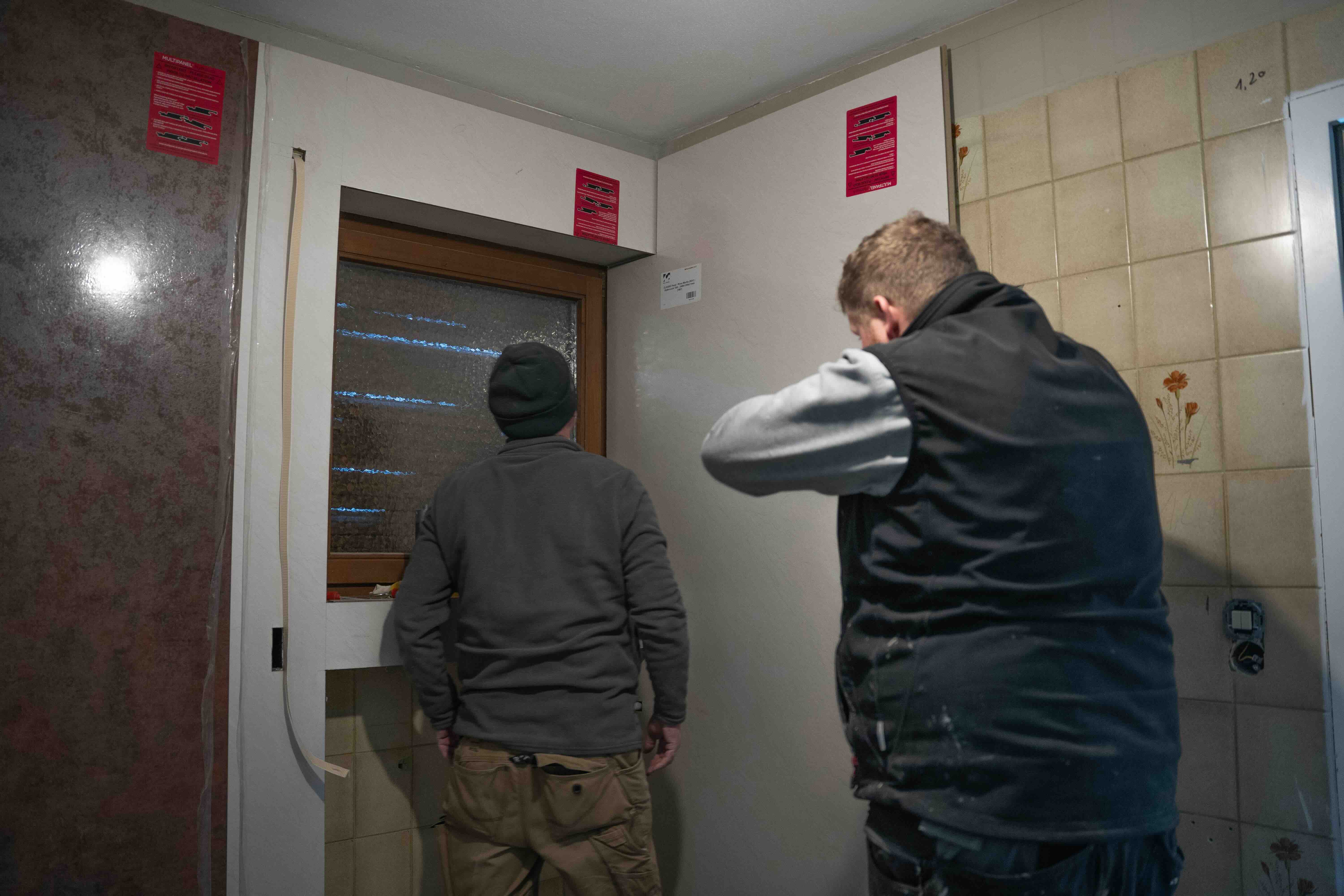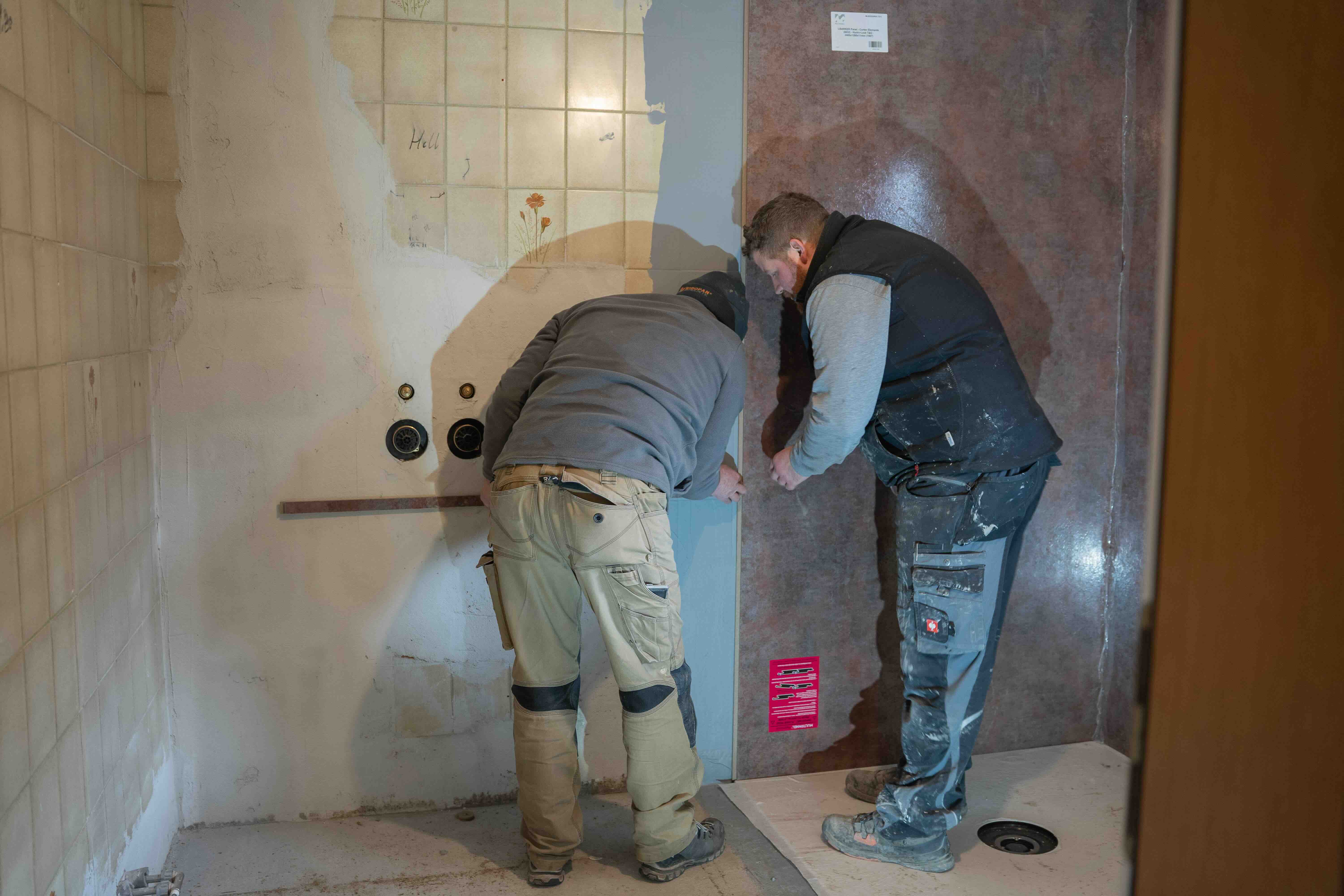 - Großflächige Wandpaneele direkt auf bestehende Fliesen
