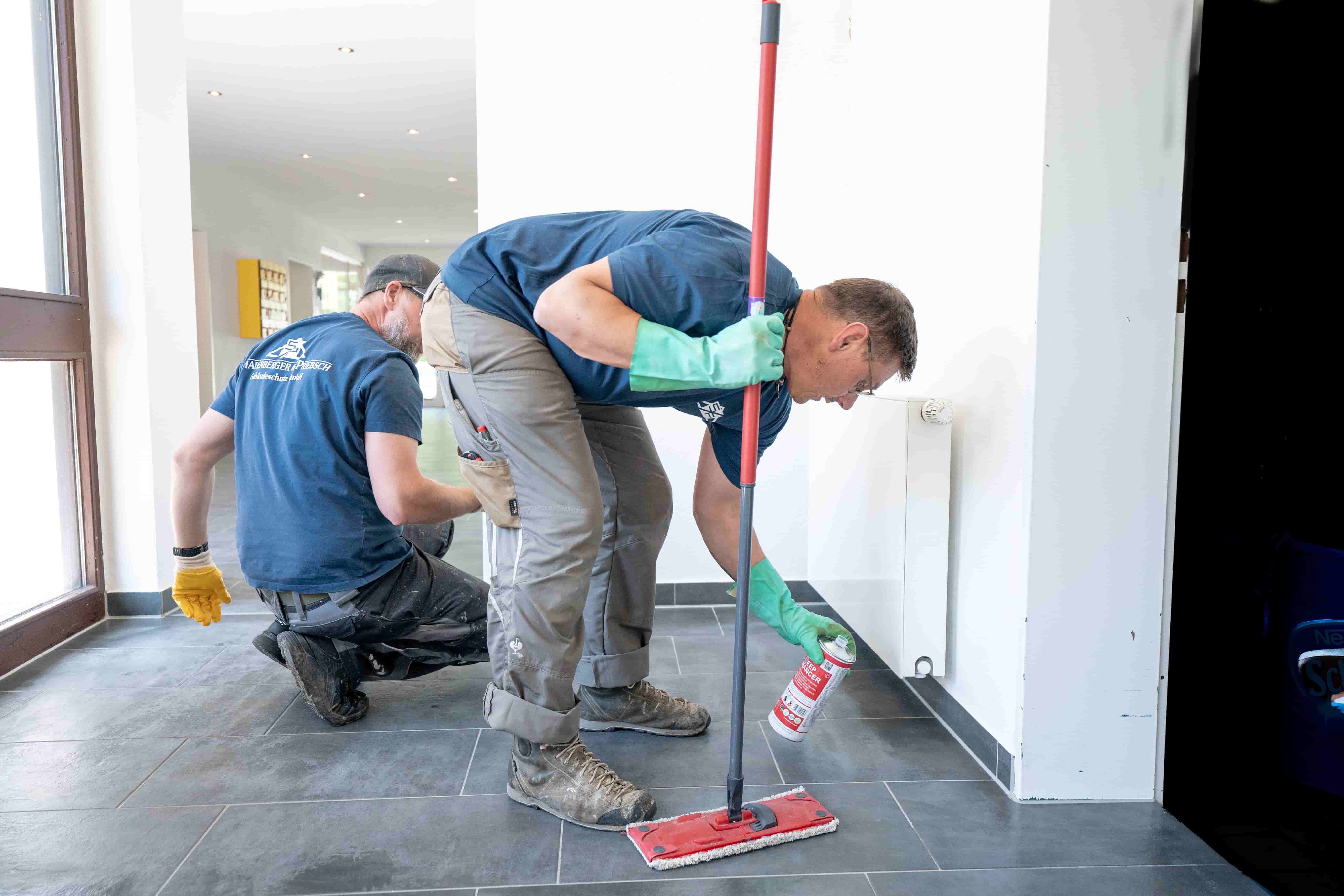 - Grundreinigung: In einem ersten Schritt wurden die Fliesen tiefenwirksam von sämtlichen Fett-, Kalk- und Chloridrückständen befreit. Nur eine absolut reine Porenbasis garantiert die optimale Wirkung des Wirkstoffs.