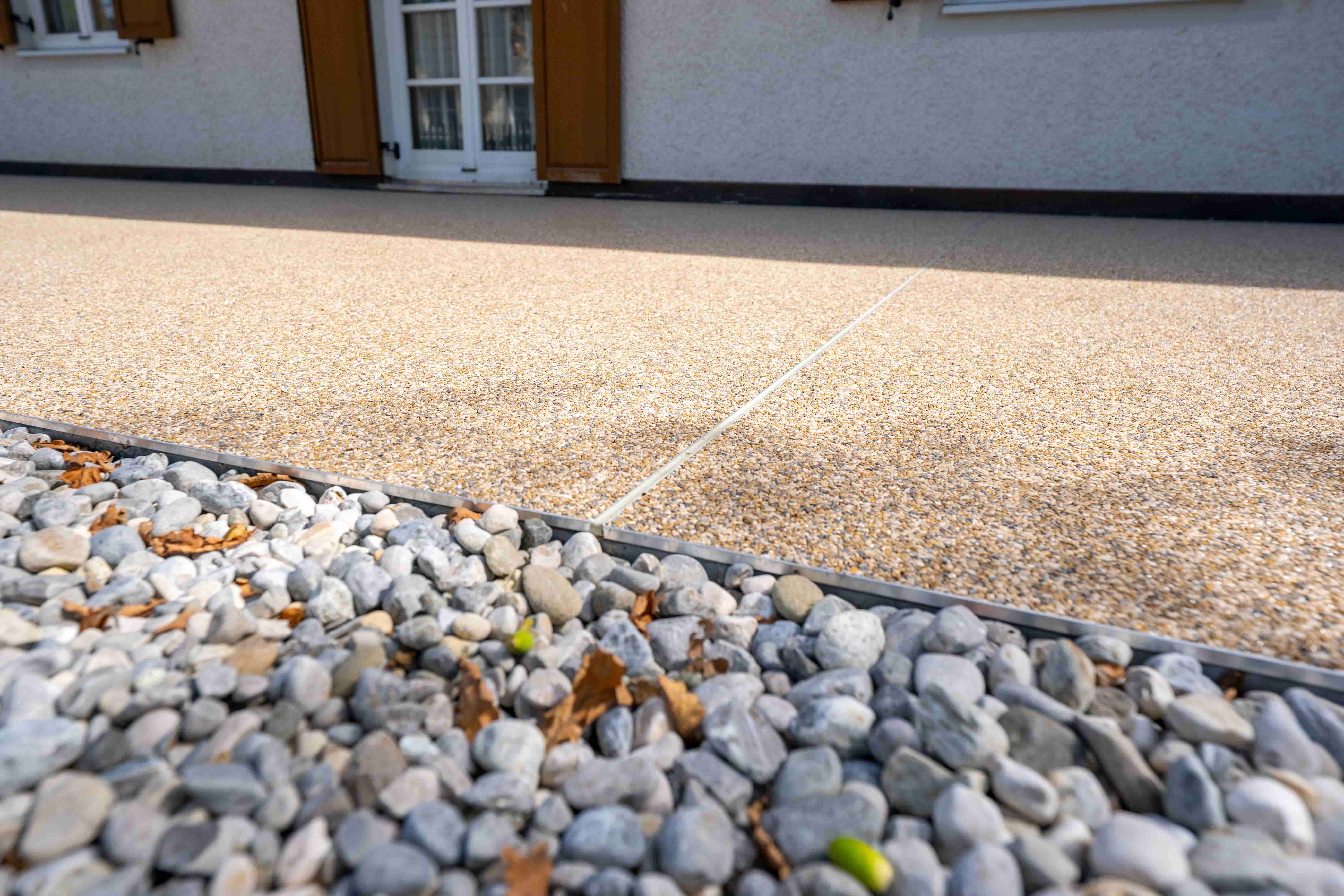 Die Lösung: Steinchenteppich mit fließendem Gartenübergang